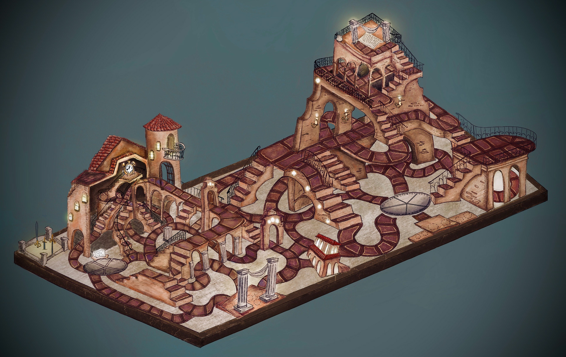 Midnight Machinations was a game board I prototyped based off lore written by Amen Veach.