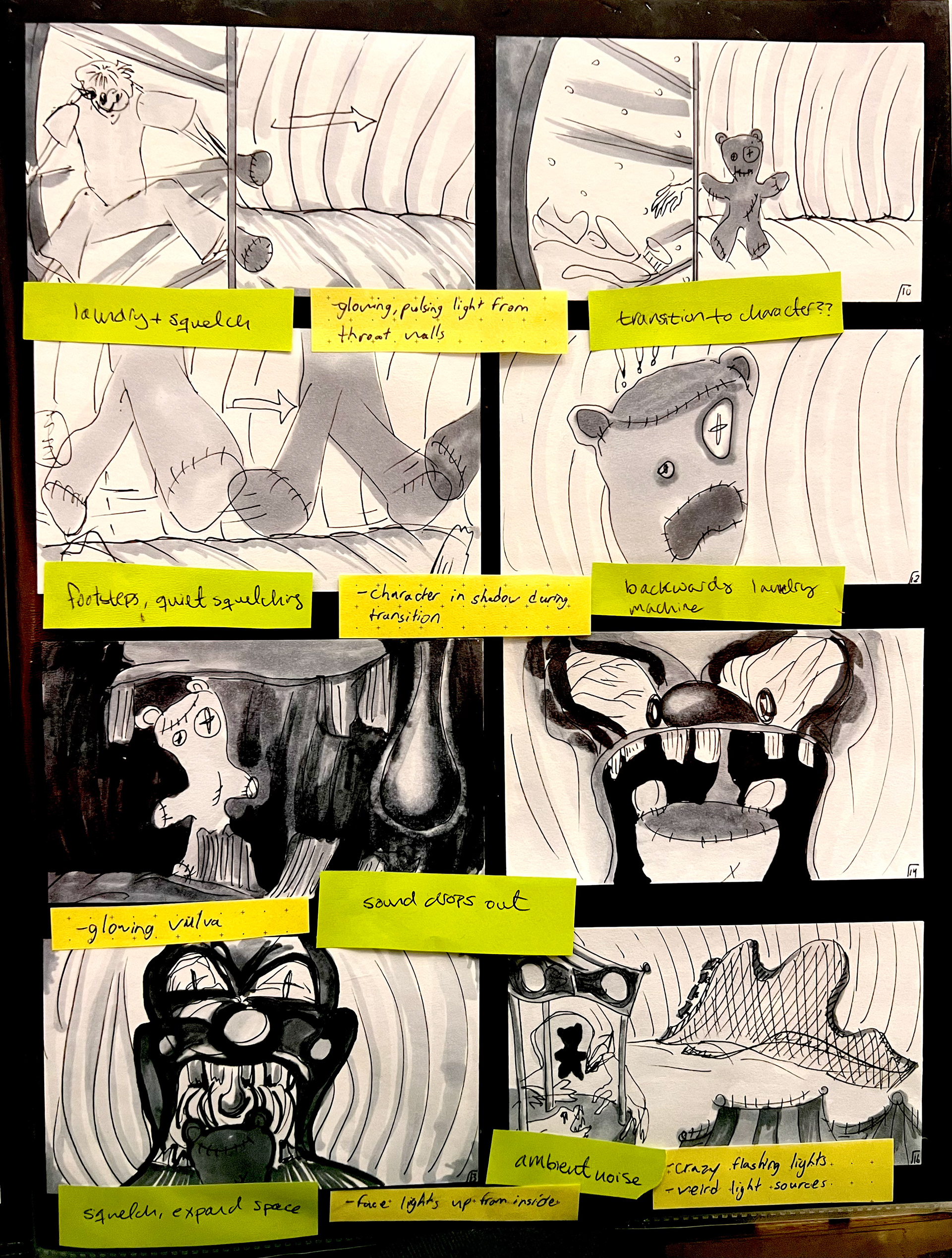 Above is the storyboard I illustrated with the team's plot concept. Last page was partially rendered by Sukie Wang.