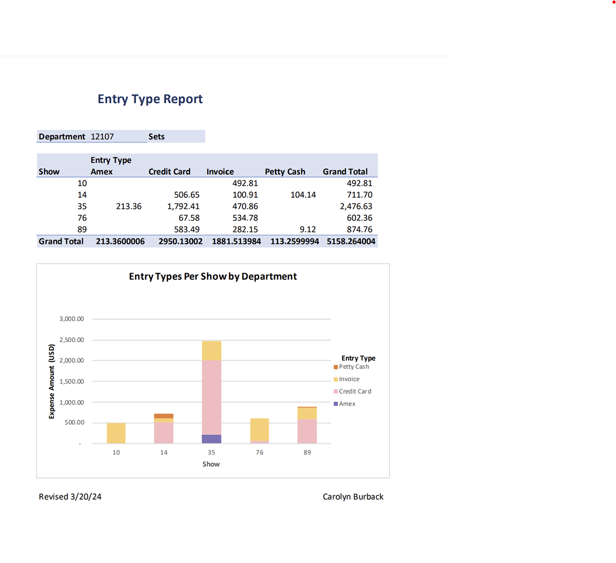 Budget resource management examples from a larger packet using Microsoft Excel and Access. (Assignment contains data pulled from a provided show that has been changed here for confidential purposes).