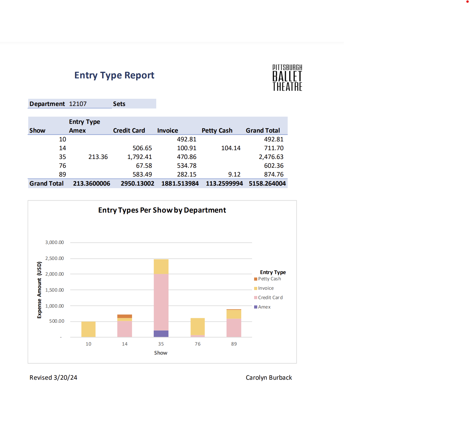 Budget resource management examples from a larger packet using Microsoft Excel and Access. (Assignment contains data pulled from a provided show.)