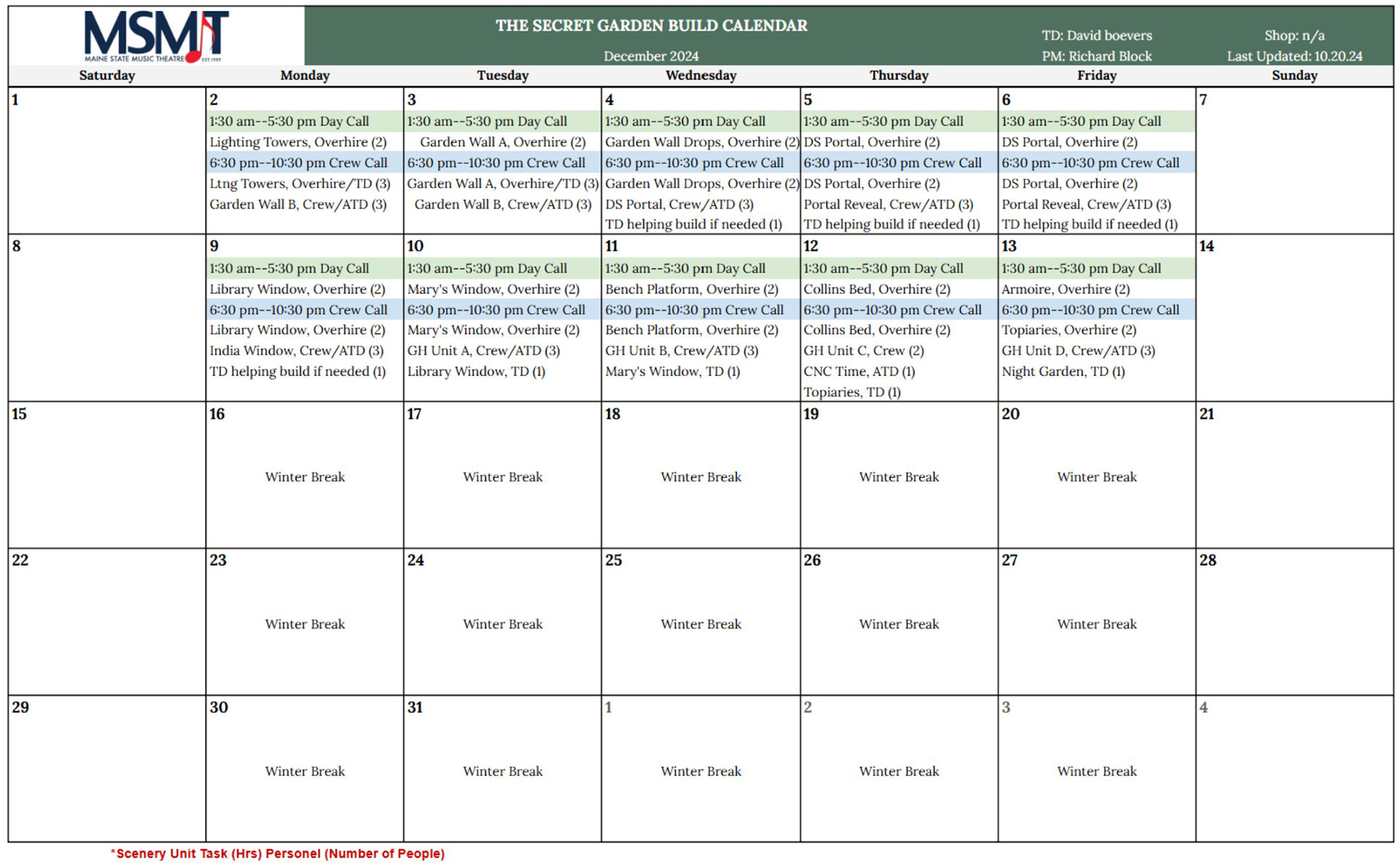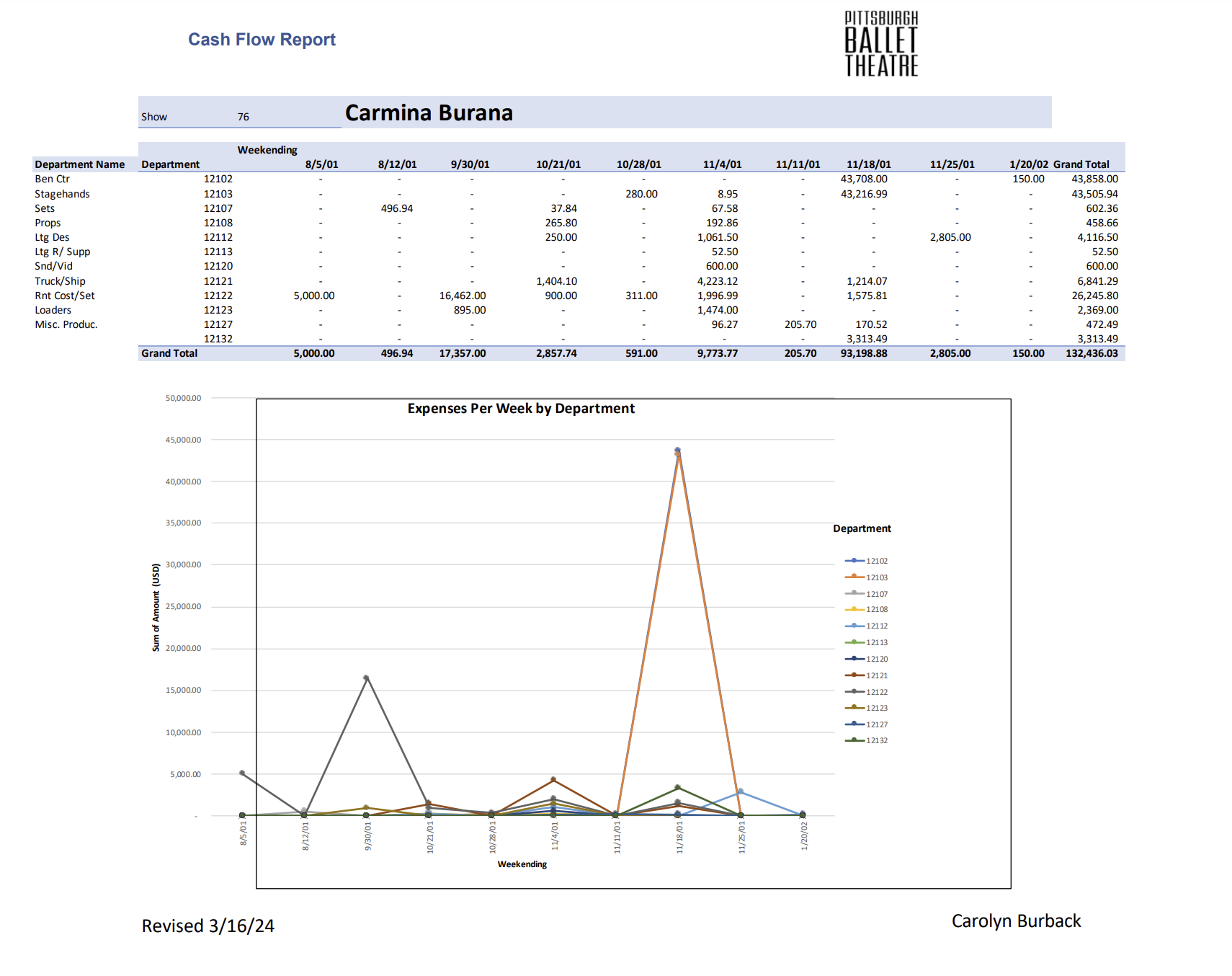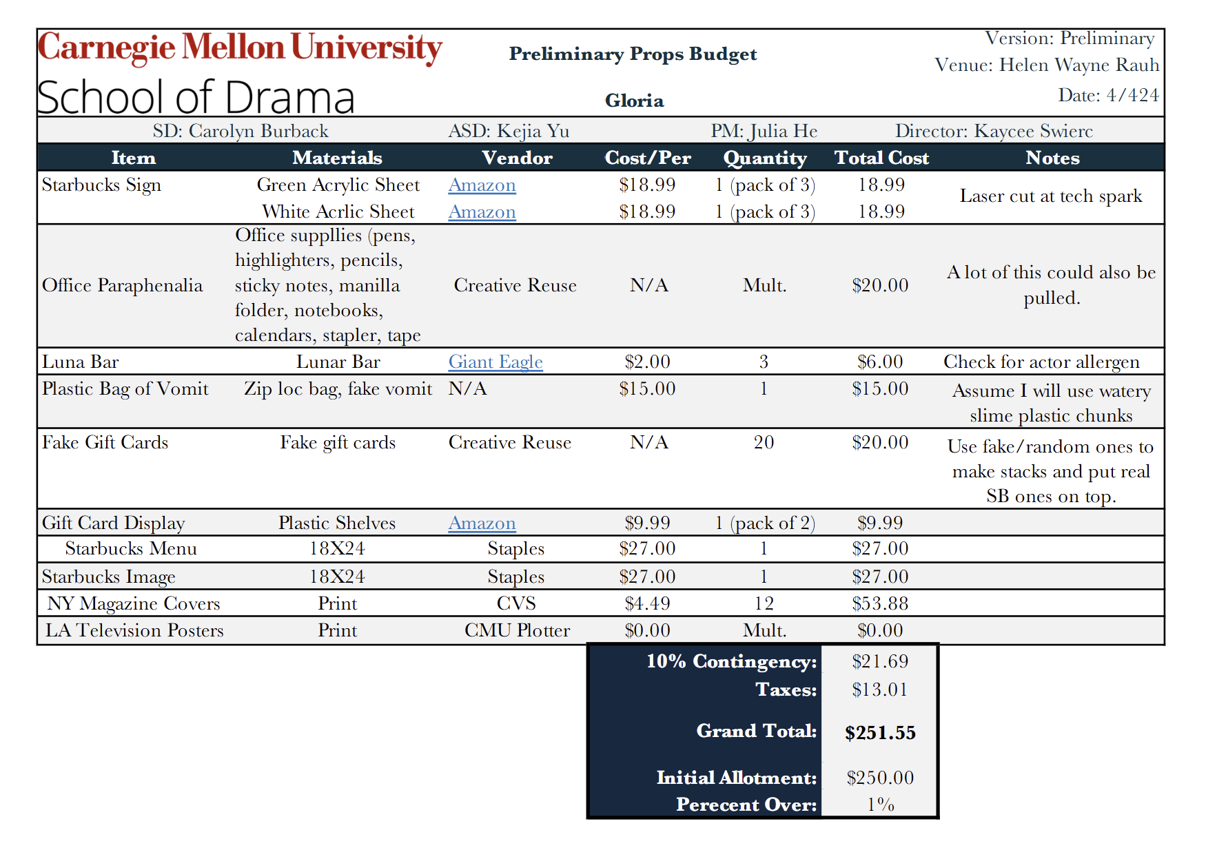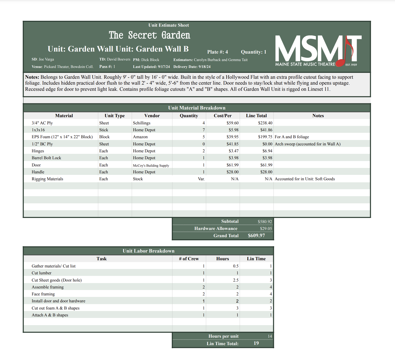 Budget Summary and Unit Breakdown Sample. Created in collaboration with Gemma Tait. (Was an assignment to budget a scenic packet.) NOT A REAL PRODUCTION