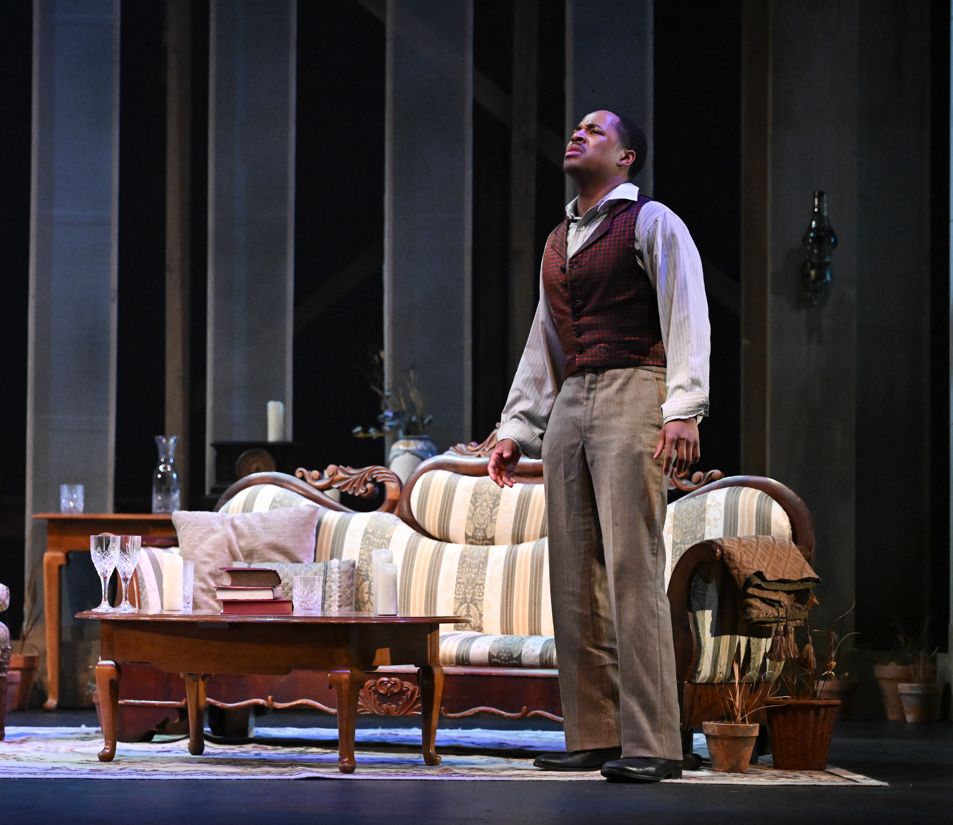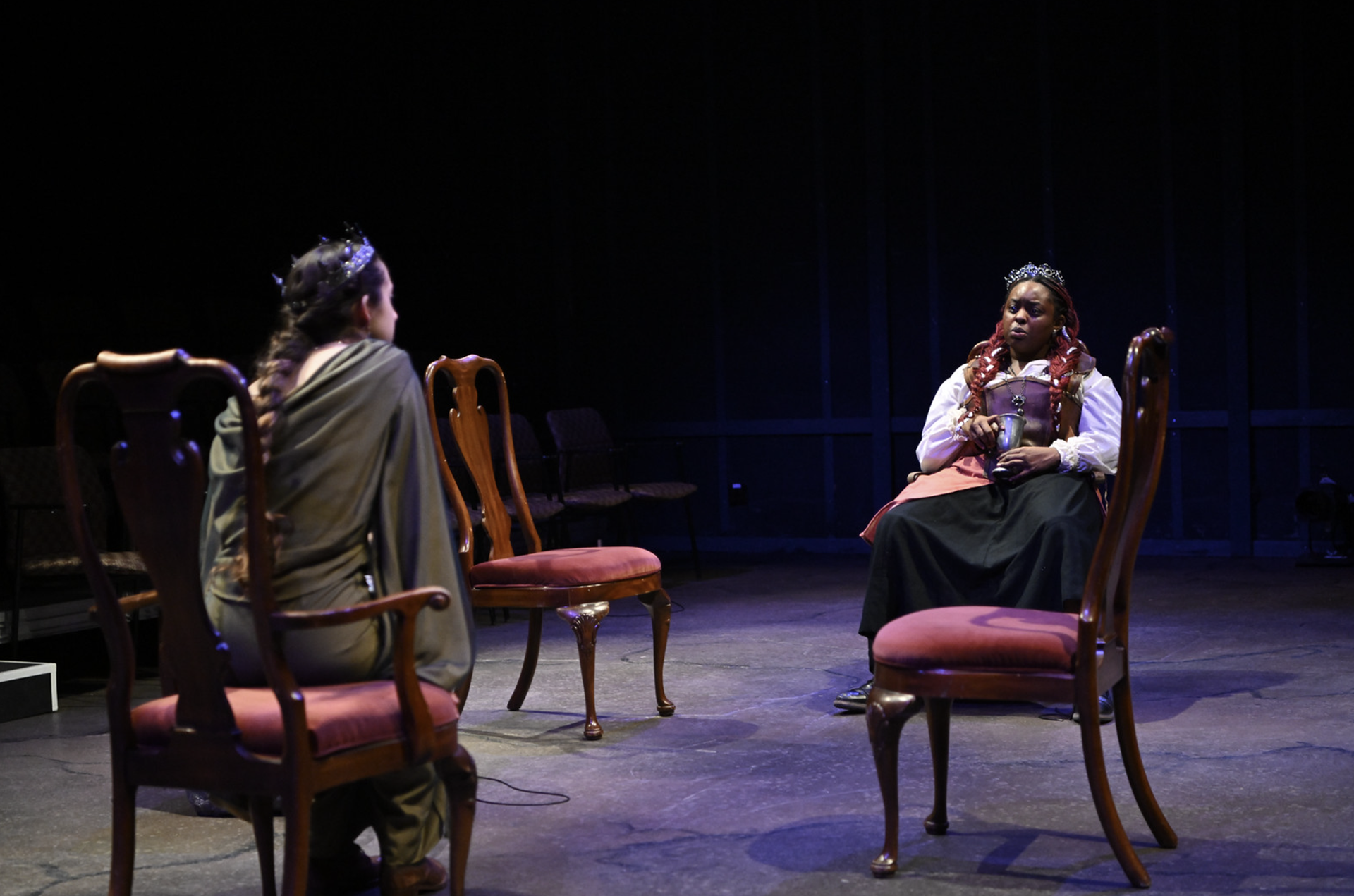 On team who re-upholstered seats for a production of Macbeth. Photo by LouisĀ Stein.