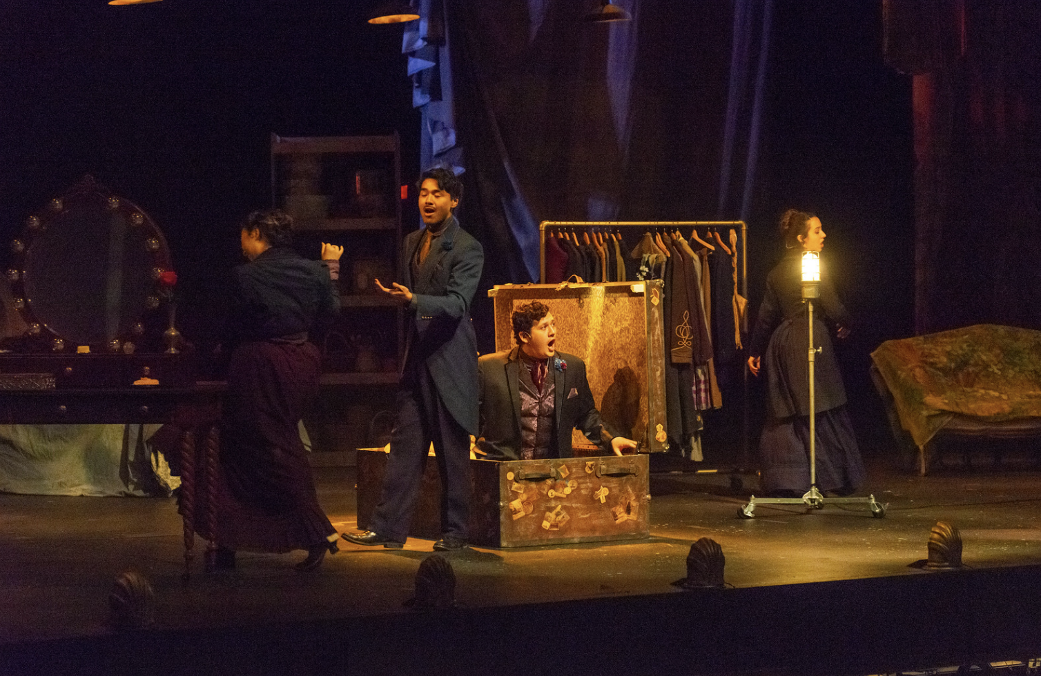 Constructed trunk that sat over a trap door. Added hardware and trap door interior wall paper. Photo by Dave Rubin