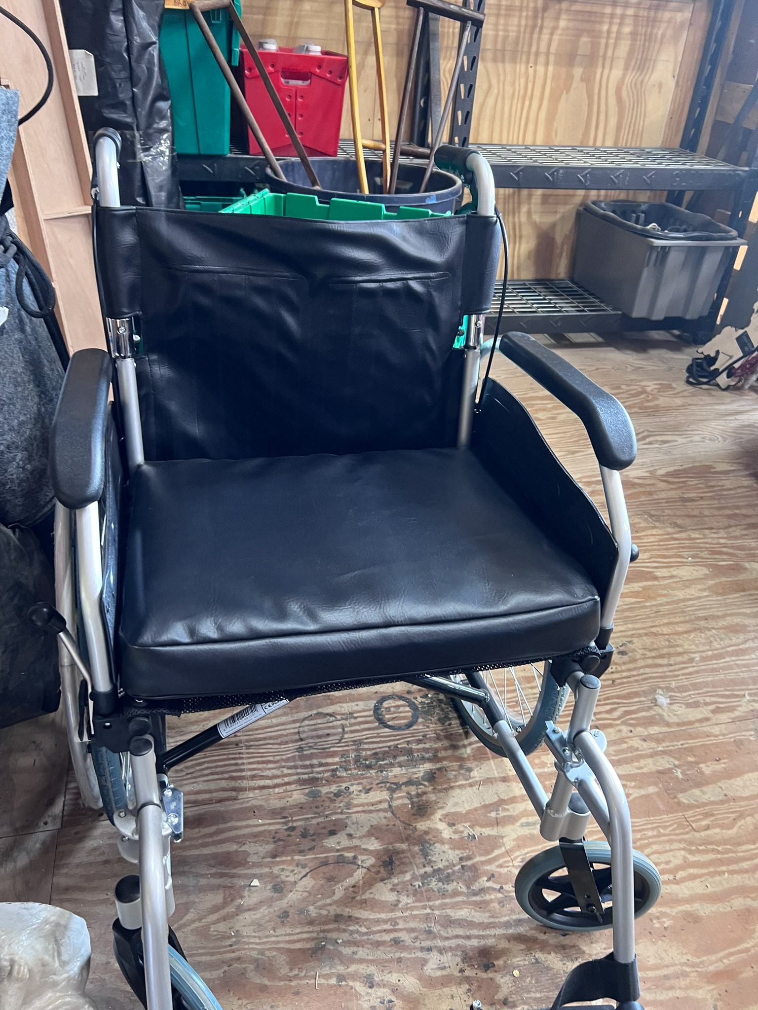 Reupholstered the seat and backing of this wheelchair.
