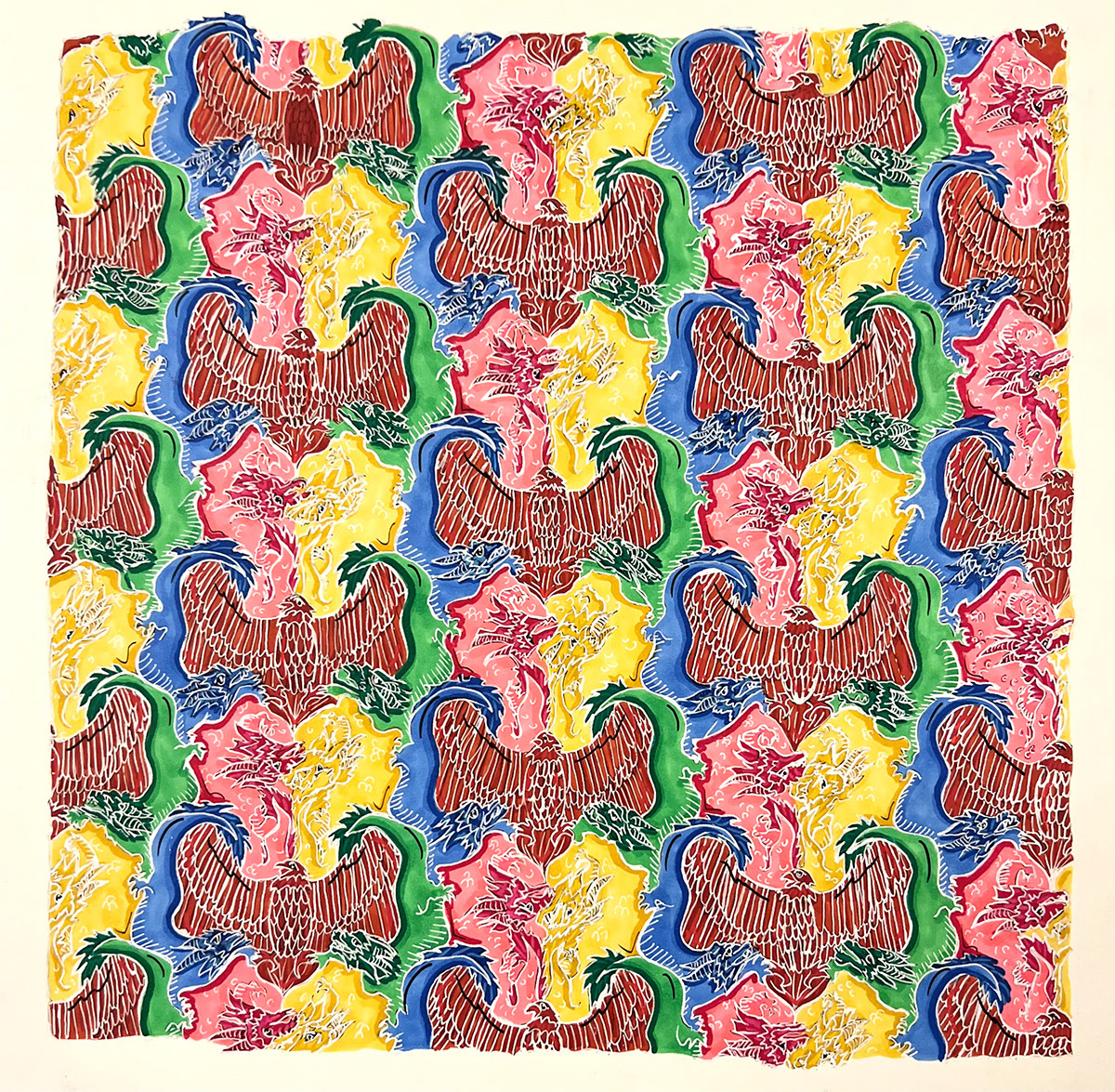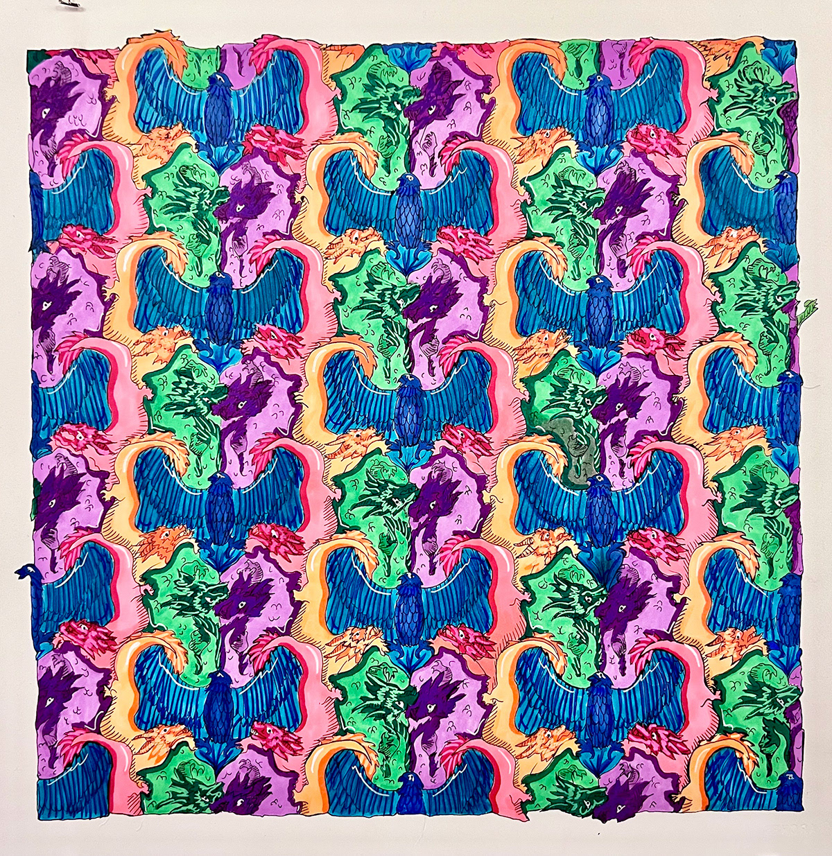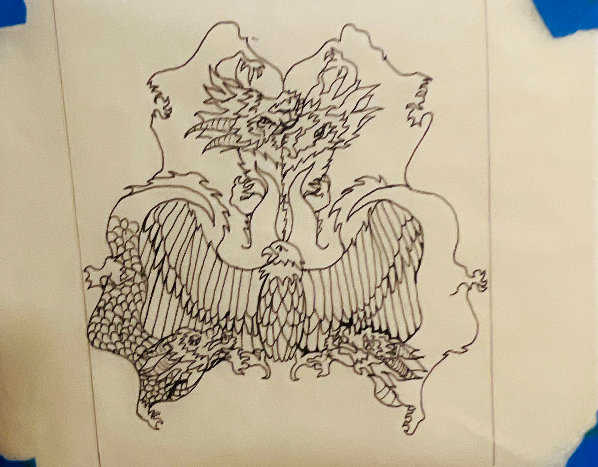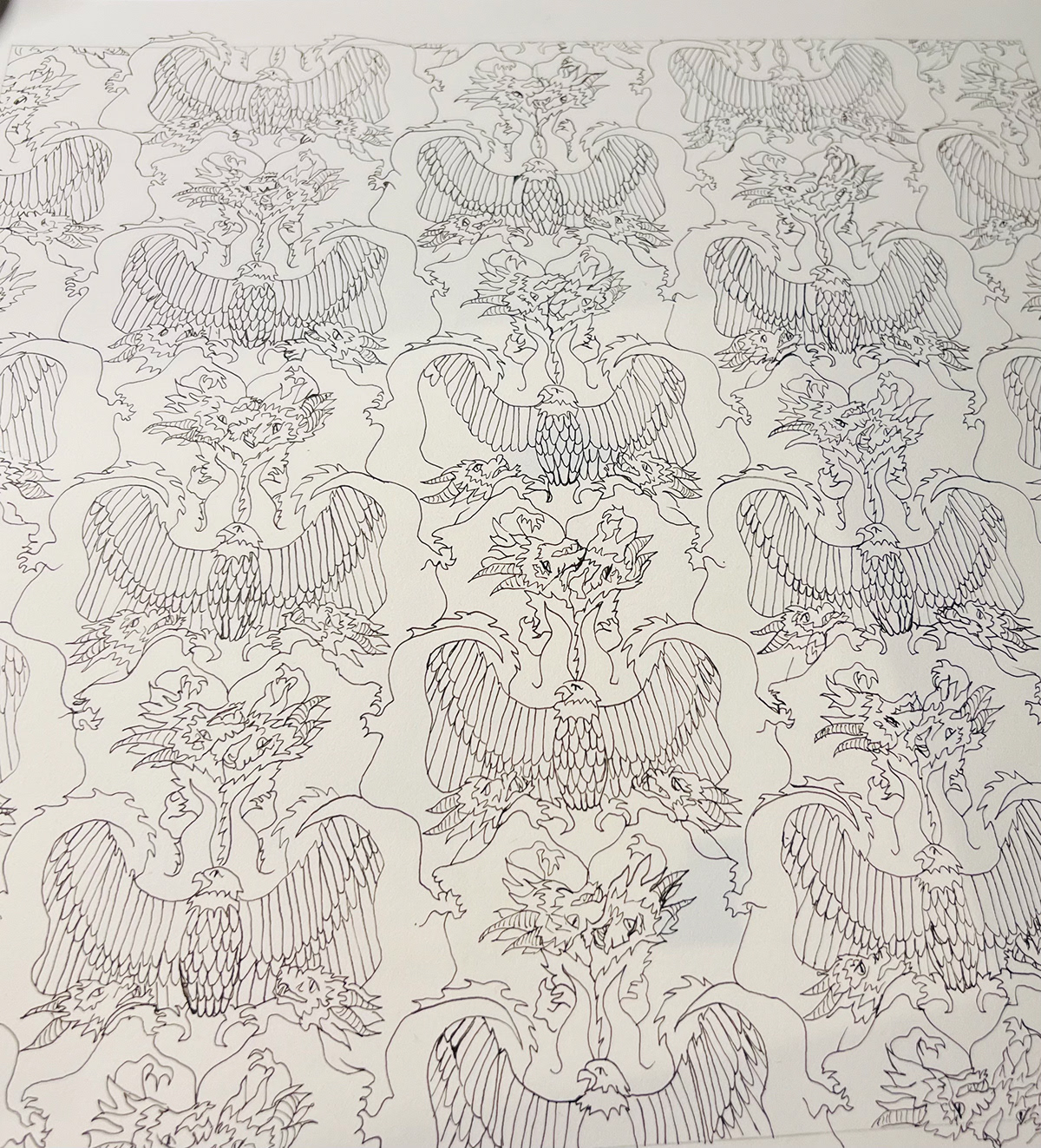 Was assigned to take inspiration from MC Escher to create my own interlocking pattern. Here I chose to use the American eagle and the Chinese dragon to symbolize my Asian American identity.