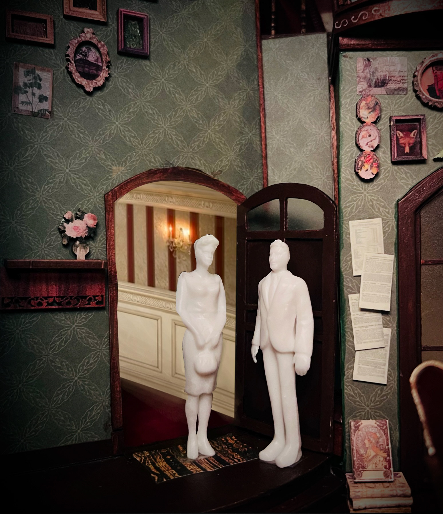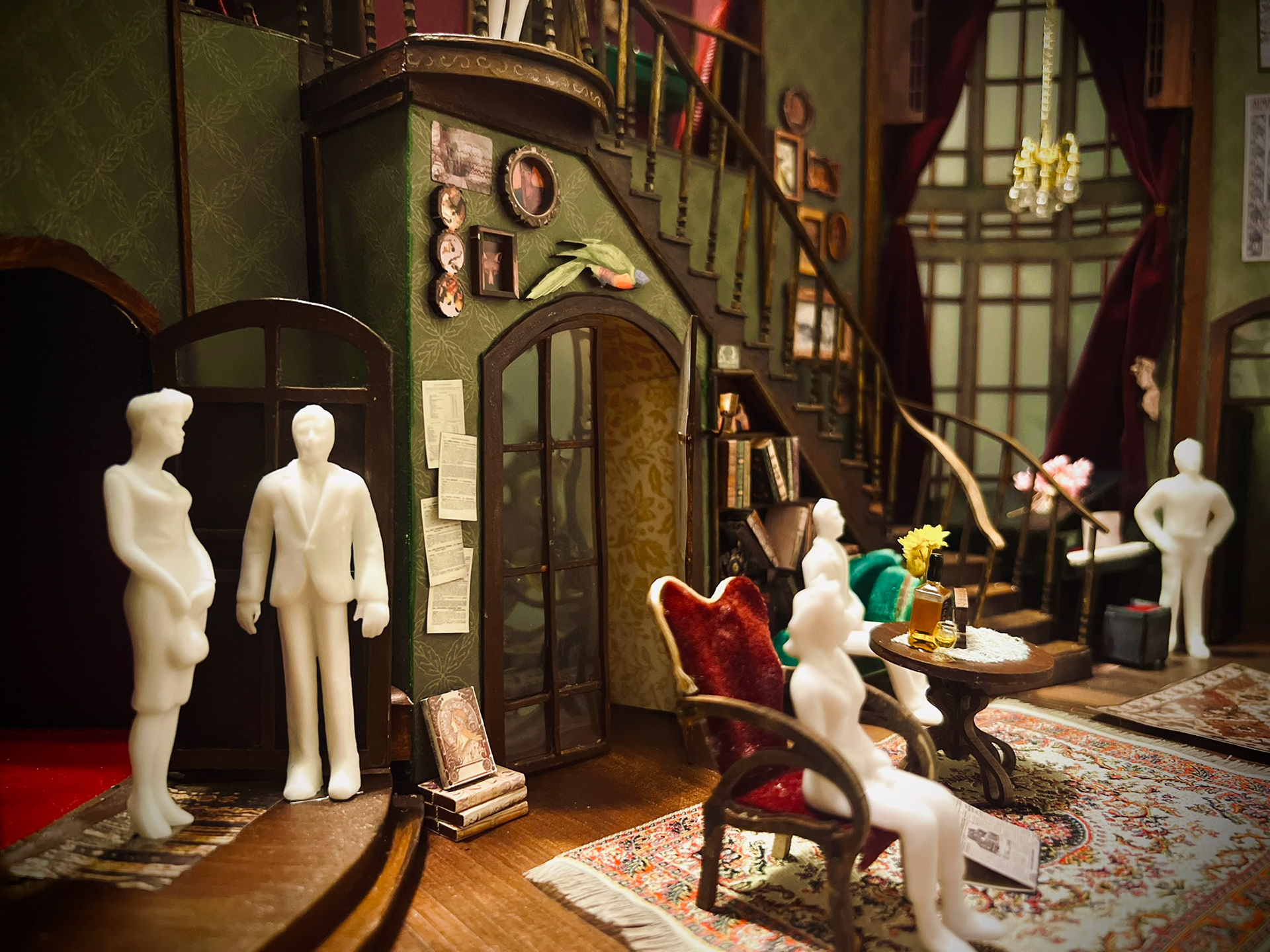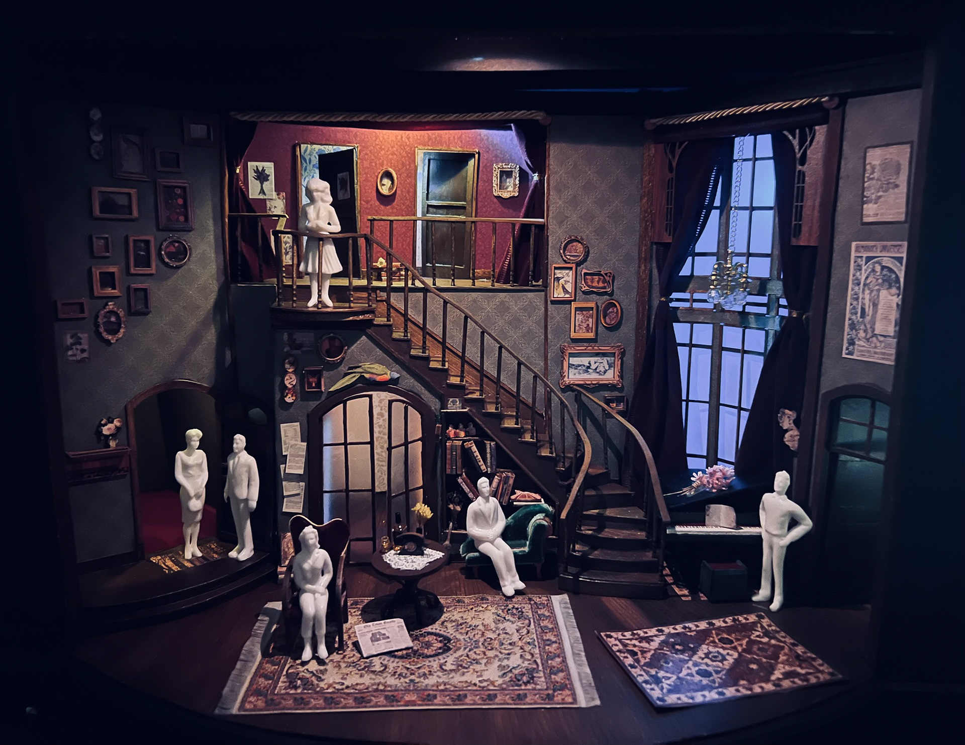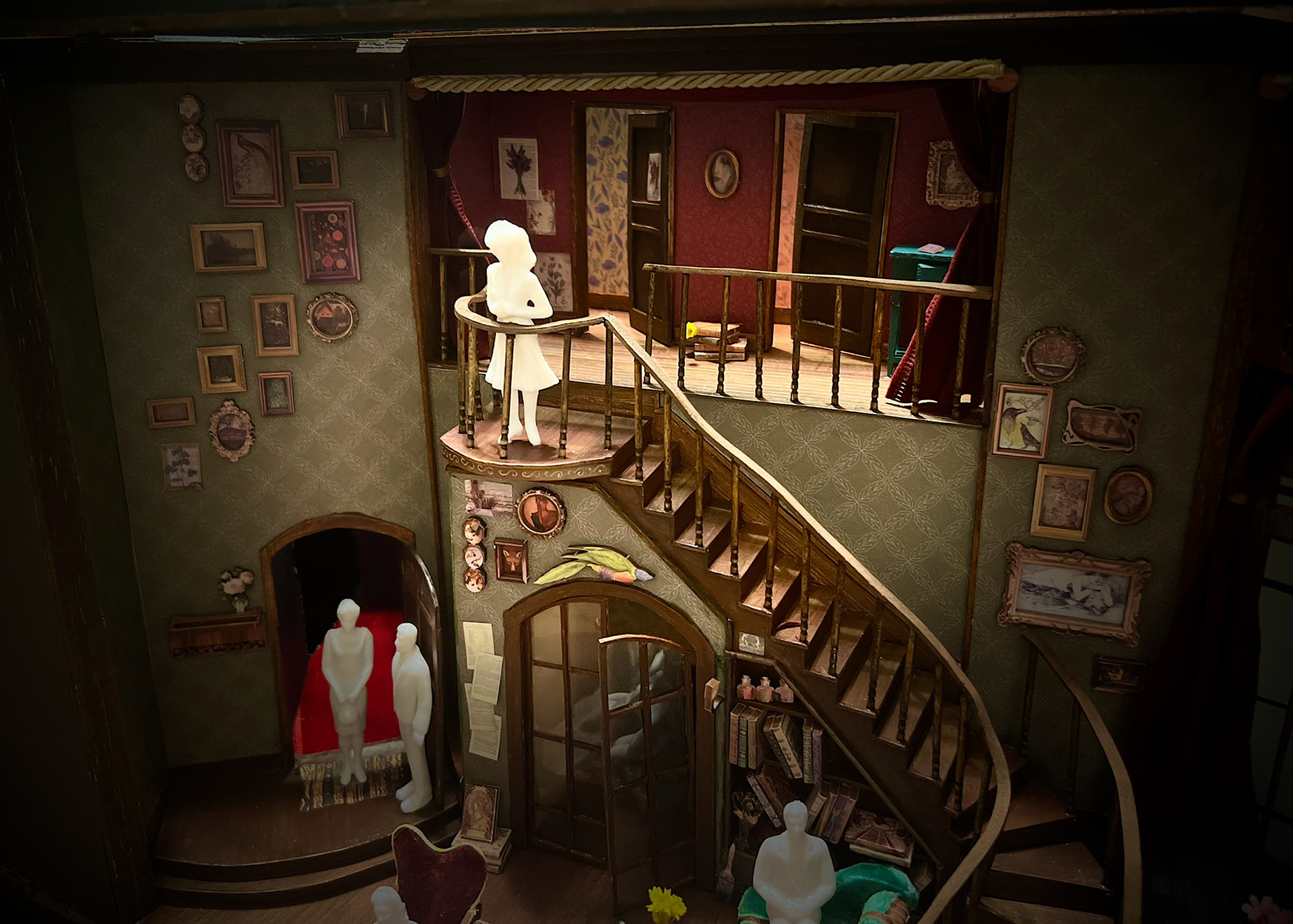 Design Statement: The Royal Family deals with the theatre and how generations of thespians can poison the family tree. The Cavendish duplex is large with a grand staircase as the runway into the stage that is their home. Overall there is a delineation of levels and descent to subtly reflect the conflict of family lines in the play. It is cluttered with theatre paraphernalia, flowers in varying states of life, and furniture with a vague European flare found in many a prop warehouse. The actions of the play require an interior set of doors and passageways akin to the often tight chaotic nature of backstage.